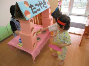 チケットを渡して、たこやきを買います。