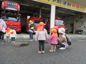 消防署では、みんな大きな消防車に興味津々です!!